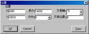 X, Y, 長さ、方向 軸の位置、長さ、方向を指定。通常の使用では Viewer Window上でマウスを使ってグラフの位置、形状を変えるか、軸をダブルクリックして現れるグラフダイアログボックスで変更するが、 それではできない変更(グラフを構成する軸を個別に変更したい場合等)をしたい時に指定する。 交差軸 交差グラフで交差するもう一方の軸。 交差位置 交差グラフでもう一方の軸と交差する位置をスケールの「増分」単位で指定する。0で自動設定。 ![]()