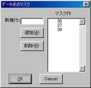 追加 「新規行」に指定したデータ行をマスクとして追加する。 マスクの追加はViewer Windowで モードを用い、マウスでプロットされたデータを指定することでも可能。