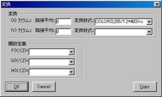 H(X,Y,Z)=ユーザ定義関数。ここで定義した関数が、変換数式中で F(), G(), H() として使用できる。 ![]()