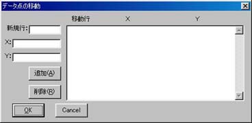 追加 「新規行」に指定したデータ行のデータを「X, Y」で指定されるデータとして解釈するように「移動行」リストに追加する。 データの移動はViewer Windowで モードを用い、マウスでプロットされたデータを指定することでも可能。