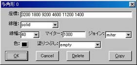多角形 凡例(多角形)の設定、削除をします。 新規作成はメニューではできません。 新規作成はViewer Windowの ボタンを押してマウスで位置を指定してください。
