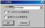 パス情報 データファイルや合成ファイルのパス情報を保存する方法。uncahange(現在の設定のまま), full(絶対パスに変更), relative(カレントフォルダからの相対パス), base(パス情報なし)から選択。 データファイルを含める NGPファイル中にデータファイルも含める。 合成ファイルを含める NGPファイル中に合成ファイル(GRAファイル)も含める。 ![]()