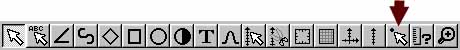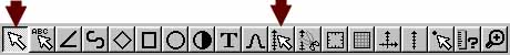 - 下図ボタンのいずれか一方(どちらでも良いです)を押してグラフィックスオブジェクト選択モード(あるいは軸のみの選択モード)にしてViewer Window 上で軸をダブルクリックし、次いで出てくるダイアログボックスで変更したい軸のボタンを押す。