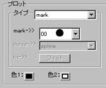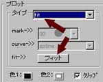 例えばプロット方法を変更してデータを曲線で結ぶようにするには上右図にの様にプロットタイプを "curve" にします。 その後、データダイアログボックスを OK で閉じ、もう一度描画してください。