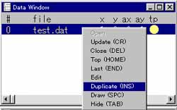 - Data Window上でマウス右ボタンを押してポップアップメニューを出し、"Open" メニューを選ぶ。